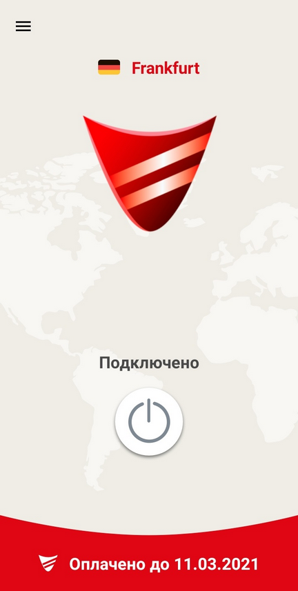 2. Если сервис не оплачен, то нажмите «Продлить подписку», чтобы оплатить сервис. После оплаты выберите локацию и нажмите на кнопку посередине.
