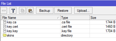 2. Сохраните файлы с ключами на компьютер и загрузите их Mikrotik. Это очень просто сделать с помощью Winbox: откройте меню Files и перетащите файлы мышью.