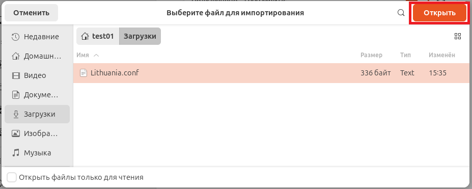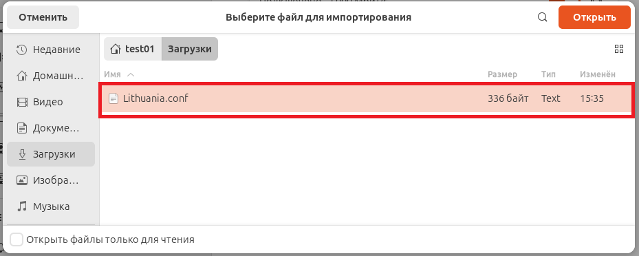 4. Перейдите в каталог, куда Вы скачали файл конфигурации .conf и выберите его: