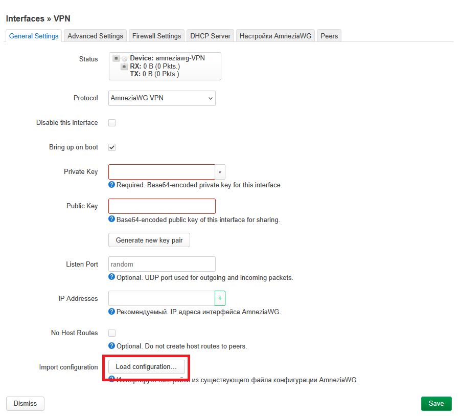 Настройка AmneziaWG на роутере OpenWrt